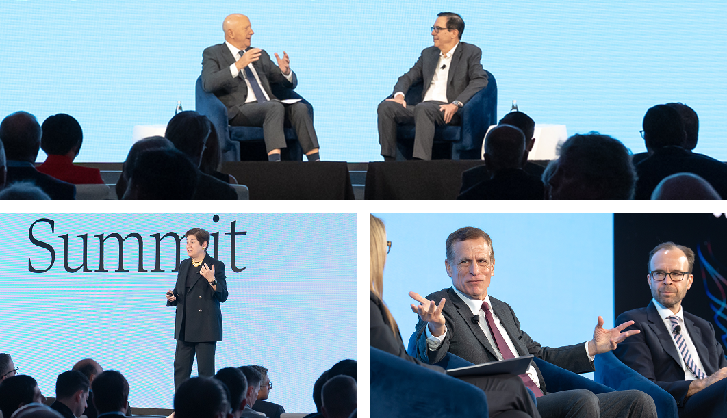 The summit opened with a deep dive into the global macroeconomic and geopolitical landscape. In a conversation with David Solomon, Chairman & CEO of Goldman Sachs, Steven Mnuchin, 77th US Secretary of the Treasury and Founder & Managing Partner of Liberty Strategic Capital, underscored the broad resilience of the US economy, despite a recent slowdown in employment growth. An AI-related capex boom is fueling near-term growth in data centers, power consumption, and job creation. The budget deficit, enlarged due to excessive post-COVID spending and political resistance to spending cuts, is a key risk, and the debt-to-GDP ratio may become a bigger concern if US GDP does not grow at 3% per annum.