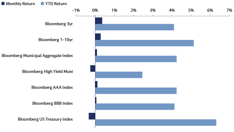 BBB spreads remained flat over the month, ending at 105 bps, while high yield muni spreads tightened 7 bps to close the year at 199 bps. For the fourth quarter, BBB and high yield spreads tightened by 1 bp and 3 bps, respectively.