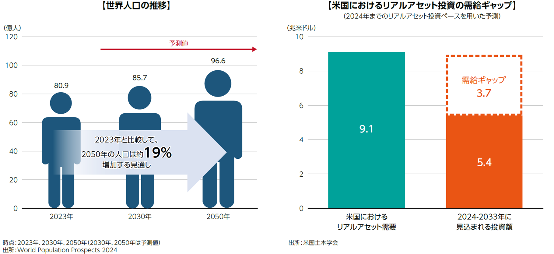- リアルアセットは私達の生活や経済活動の土台であるため、世界人口の増加予測を背景に、今後も新規建設のリアルアセット投資の需要は拡大することが見込まれます。
